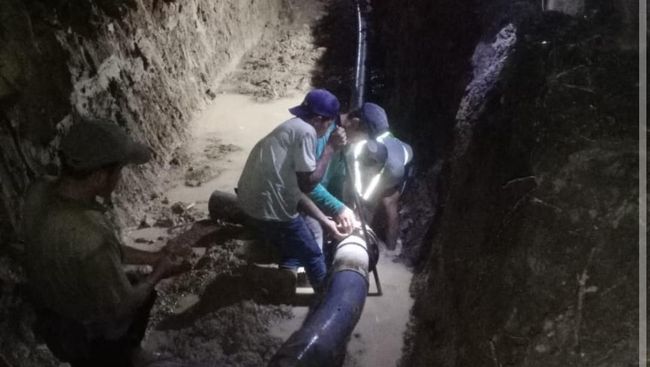 "Karena digali dengan alat berat sehingga ada pipa kami kena alat berat. Sebenarnya sudah diperbaiki, tapi ternyata ada longsor susulan membuat pipa PDAM ketarik hingga putus lagi," ujarnya.