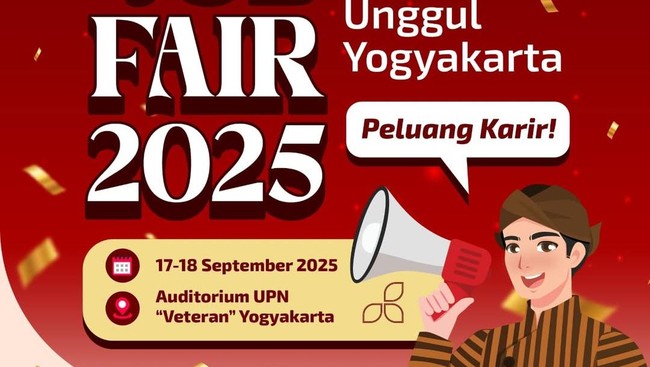 - Job Fair Disnakertrans DIY digelar pada 17-18 September 2025 di Auditorium WR Supratman, Universitas Pembangunan Nasional (UPN) "Veteran" Yogyakarta.