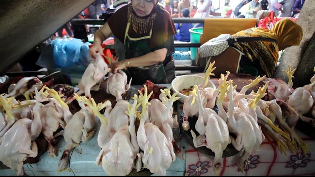 - Daging ayam ras segar: Turun dari Rp 36.750 menjadi Rp 35.750/kg