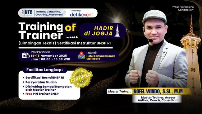 Trainer (ToT) & Sertifikasi Instruktur Level 4 BNSP hadir Offline di Yogyakarta, dirancang khusus bagi kamu yang ingin meningkatkan kemampuan sebagai trainer, fasilitator, atau pendidik profesional.