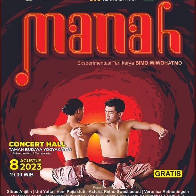 Taman Budaya Yogyakarta (TBY) dan Dinas Kebudayaan (Disbud) DIY menggandeng sejumlah seniman menghadirkan eksperimentasi tari berjudul Manah. Pentas bisa disaksikan besok Selasa 8 Agustus 2023 mulai pukul 19.30 WIB di Concert Hall TBY, gratis lho Dab!