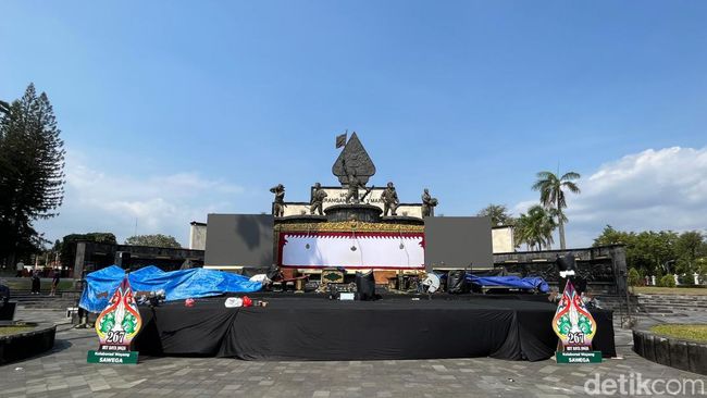 Pantauan detikJogja, Rabu (4/10) pukul 14.00 WIB, panggung pementasan telah siap dengan properti dan alat musik gamelan sudah ditata. Kursi dan tenda untuk penonton juga sudah dipersiapkan.