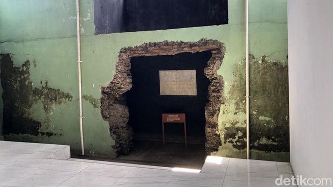 "Tembok jebol itu berada di belakang pendopo, sebelah timurnya tembok itu. Pendopo itu yang ditinggali Pangeran Diponegoro. Pendoponya bukan yang ini, yang di belakang sana dulunya, yang asli sudah dibumihanguskan Belanda," urainya.