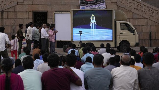 Jogjakarta - India sukses mendaratkan misi antariksa Chandrayaan-3 di Bulan, Rabu (23/8/2023). Warga bersukacita.