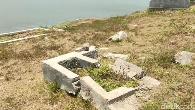 Kulon Progo - Air Waduk Sermo di Kulon Progo surut saat musim kemarau ini. Kompleks makam kuno di waduk itu kembali terlihat. Begini potretnya.