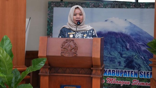 Bupati Sleman, Kustini Sri Purnomo membuka High Level Meeting Tim Pengendalian Inflasi Daerah (TPID) Kabupaten Sleman. Kegiatan digelar untuk meningkatkan sinergi kolaborasi pengendalian harga dan stok ketersediaan bahan pangan menjelang Hari Raya Idul Fitri 2024.