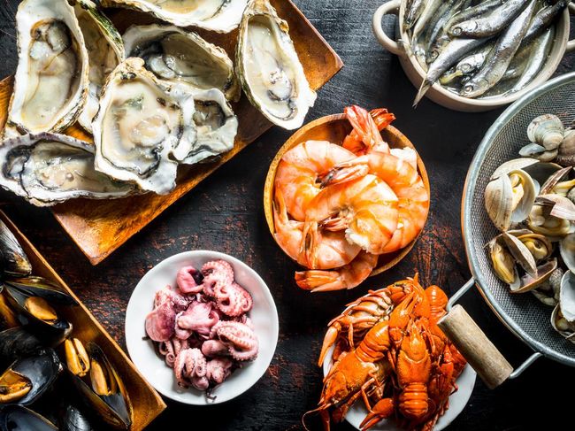 Makanan laut atau seafood memiliki kandungan zat besi yang tinggi, sehingga sangat baik sebagai makanan penambah darah yang membantu mencegah dan mengatasi anemia. Beberapa jenis seafood yang kaya akan zat besi antara lain ikan, kepiting, kerang, dan udang.
