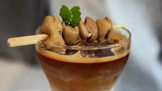 Sebuah kafe di China mengkreasikan minuman yang unik. Mereka membuat kopi dengan topping (pugasan) berupa sate usus babi. Bagaimana rasanya?