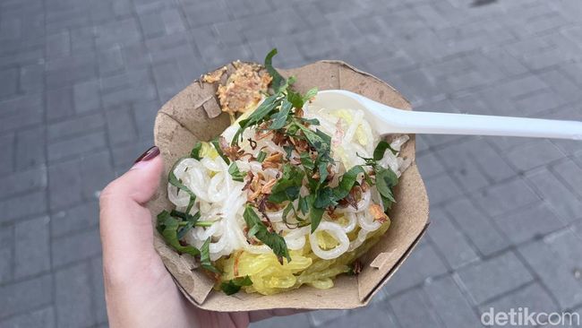 Biasanya ada beberapa pedagang yang menawarkan mi pentil yang sudah matang dengan tambahan taburan bawang merah goreng dan irisan daun seledri.