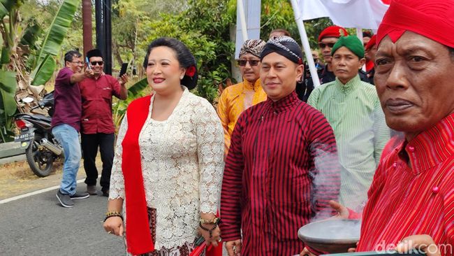 Pasangan itu juga diikuti Ketua DPC PKB Gunungkidul, Sutiyo, yang mengenakan jarik berwarna hijau. Selain itu tampak Ketua DPD Golkar Gunungkidul, Heri Nugroho, mengenakan beskap warna kuning.