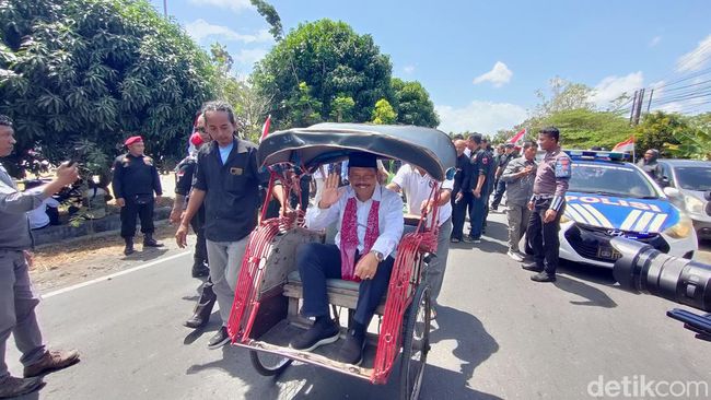 Pantauan detikJogja di lokasi, Kamis (29/8/2024) siang, gemuruh musik hadrah menggema saat paslon yang diusung oleh Partai Gerindra, PKB, dan Nasdem itu hendak memasuki kantor KPU Kulon Progo. Pendukung Marija-Yusron, meliputi organisasi masyarakat Patriot Garuda Nusantara (PGN), emak-emak petani, dan perwakilan dari masing-masing partai pengusung juga terlihat ikut dalam rombongan tersebut.