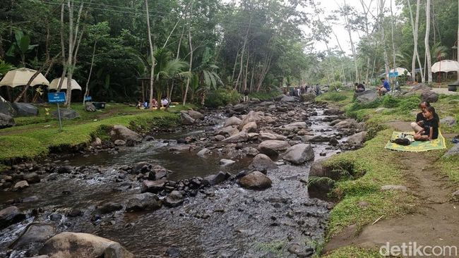 Batu-batu tersebut juga menyebar sampai tengah sungai, menjadi pijakan tepat bagi detikers yang ingin mencicipi ademnya air sungai. Suasana sepi dan tenang bersama suara air bertabrakan menjadi kelebihan tempat ini. Airnya juga jernih dan dingin menyegarkan. Ada pula kursi-meja kayu di sungai yang bisa dimanfaatkan untuk spot foto.