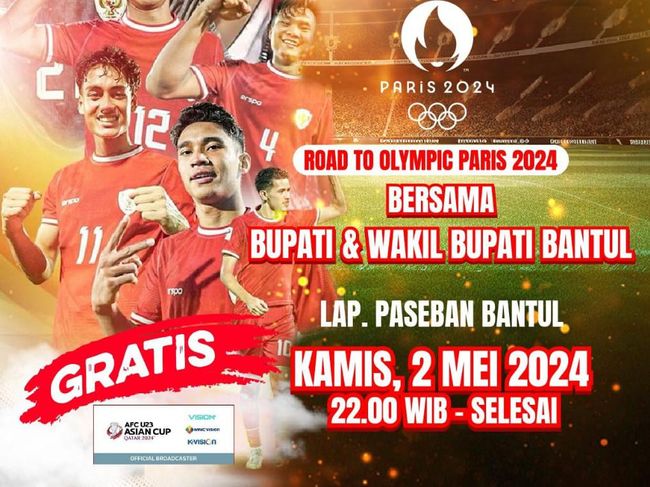 Polres Bantul bersama Pemerintah Kabupaten (Pemkab) Bantul menggelar nonton bersama (nobar) perebutan peringkat ketiga Piala Asia U-23 antara Indonesia melawan Irak di Lapangan Paseban malam nanti. Gas ramaikan, Dab!