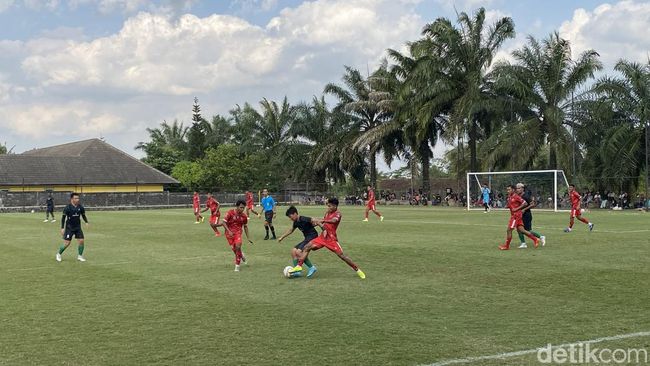 Laga uji coba antara PSS Sleman vs tim PON Sumut dihelat di Lapangan Pakembinangun, Sleman pada Jumat (12/7/2024) sore.