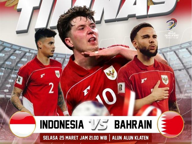 Duel Indonesia vs Bahrain di putaran ketiga Kualifikasi Piala Dunia 2026 zona Asia berlangsung di Stadion Gelora Bung Karno, Jakarta, Selasa (25/3/2025). Kick off pukul 20.45 WIB.