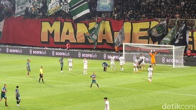 Usai situasi kondusif, laga pun berlanjut. Pertandingan berlangsung panas menjelang injury time.