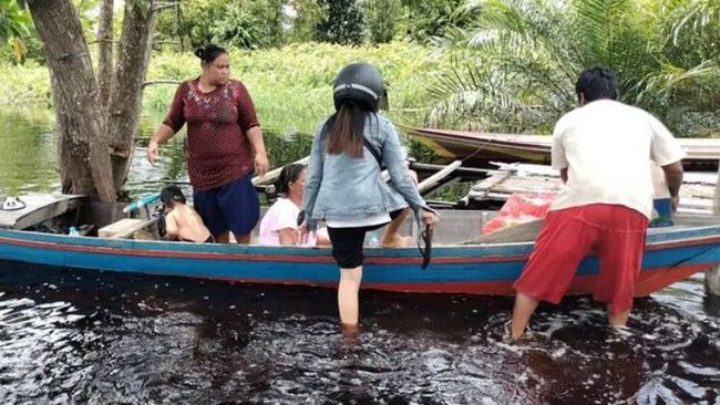 Warga Tumbang Rungan, Ani (34) yang terdampak banjir memaparkan kondisi terkini di daerahnya. Menurutnya masih ada sedikit banjir, namun terbilang cukup aman.
