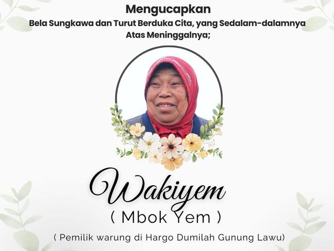 Artikel ini sebelumnya telah tayang di detikJatim dengan judul Berita Duka, Mbok Yem Pemilik Warung Puncak Gunung Lawu Meninggal.