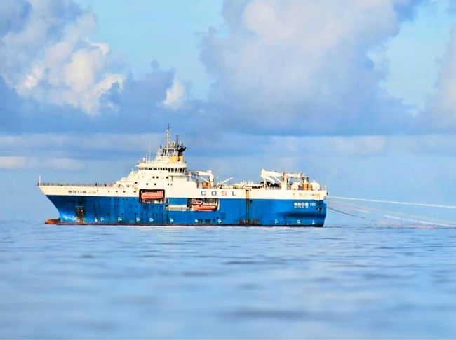 "Ada kapal pandu di depan dan belakang untuk mengawasi. Kapal utama menarik kabel data sepanjang 10 km, jadi kami minta nelayan menjauh dari area ini," jelas Trimulbar.