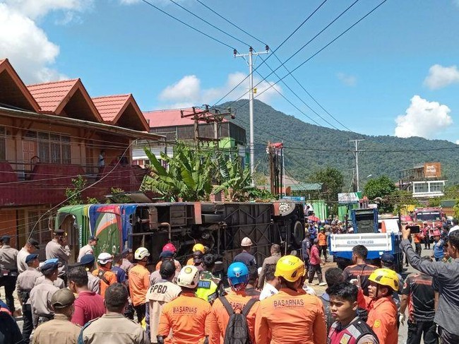 Bus ALS mengalami kecelakaan di Padang Panjang, Sumatera Barat, hingga menewaskan belasan orang. Para korban tewas dan luka-luka dievakuasi ke RS terdekat.