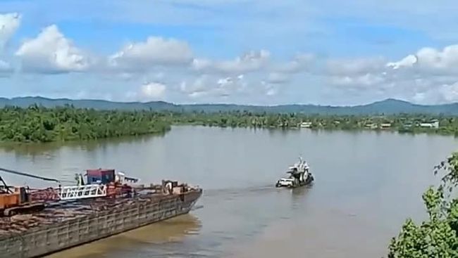 Sebuah ponton yang ditarik kapal tugboat menabrak tiang Jembatan Salimbatu di Kecamatan Tanjung Palas Tengah, Kabupaten Bulungan, Kalimantan Utara, pada Sabtu (17/5/2025) pagi.