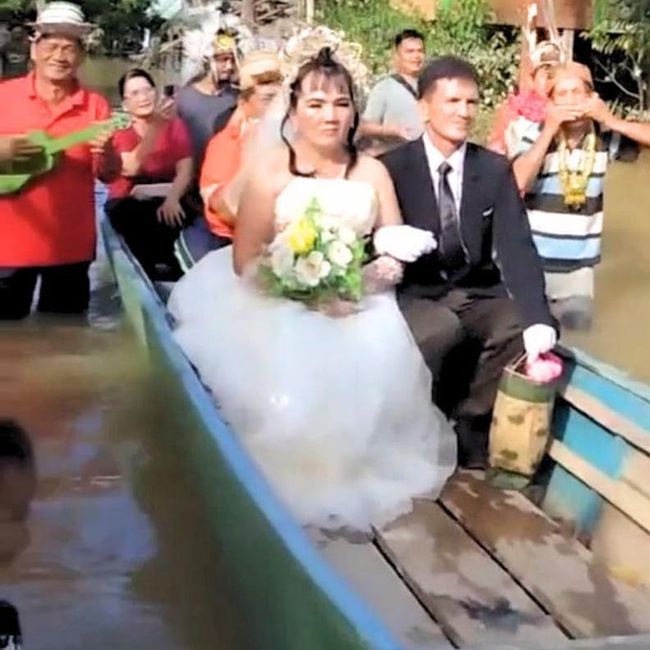 Namun hujan deras mengguyur sepanjang malam sebelum acara dan menyebabkan banjir besar pada hari pernikahan. Banjir yang merendam desa memaksa panitia memutar otak. Awalnya, mereka berencana memindahkan lokasi ke tempat yang belum terendam.