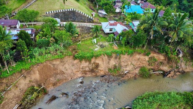 "Bagian bawah sudah terkikis. Jika hujan dan banjir berlanjut, longsor akan makin parah," ujarnya.