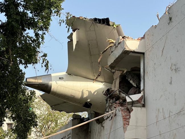 Simak Video "Video: Kondisi Pesawat Air India Tertancap di Atas Bangunan"