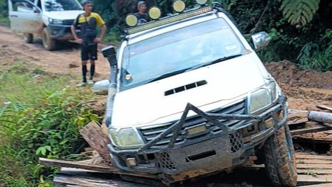 "Jalan amblas. Kita pasang bantalan kayu, tapi tanah di bawahnya lembek seperti sawah padi. Jembatan jabuk sudah, tidak layak pakai. Mobil kosong saja patah kalau lewat, apalagi bawa muatan," ceritanya.