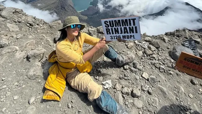 Dikutip detikTravel dari akun instagramnya, keindahan Rinjani ia pamerkan pada Minggu (13/7) lewat akun pribadinya. Captionnya begitu menarik 'embah embah 62 th di puncak Rinjani'.