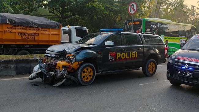 "Mobil Dinas Dit Samapta Polda Kalsel yang ditumpangi empat orang anggota dalam perjalanan menuju lokasi pengamanan kegiatan sterilisasi gereja di Banjarmasin," kata Adam, Minggu (27/7/2025).