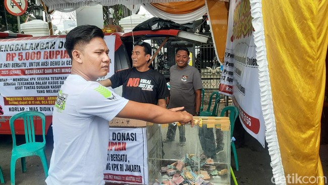 "Posko ini penggalangan donasi Rp 5 ribu dari masyarakat Kabupaten Pati untuk akomodasi kita, yang mana Aliansi Masyarakat Pati Bersatu akan melakukan demo di gedung KPK RI di Jakarta," jelas Koordinator Aliansi Masyarakat Pati Bersatu, Supriyono, Rabu (20/8/2025).