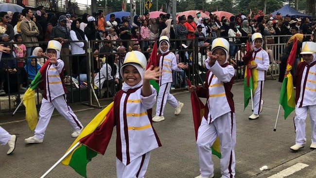 Meski sempat diguyur rintik hujan, antusiasme warga tetap tinggi, menjadikan pawai ini sebagai salah satu momen paling meriah dalam rangkaian peringatan HUT ke-80 Kemerdekaan Republik Indonesia.