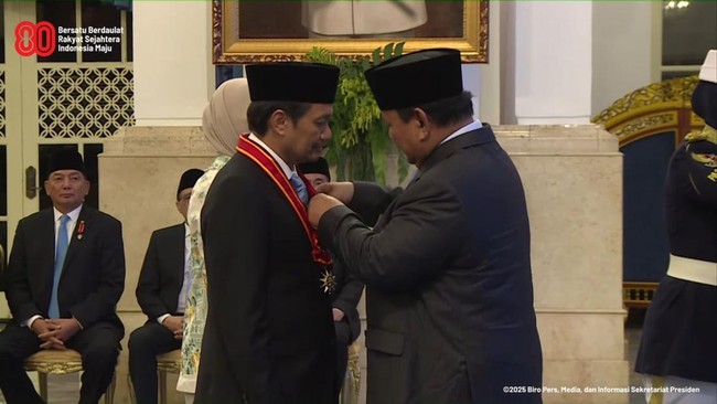 Diketahui, penyematan pin sekaligus pemasangan selempang dilakukan langsung oleh Presiden RI Prabowo Subianto di Istana Negara.