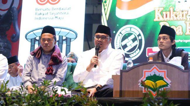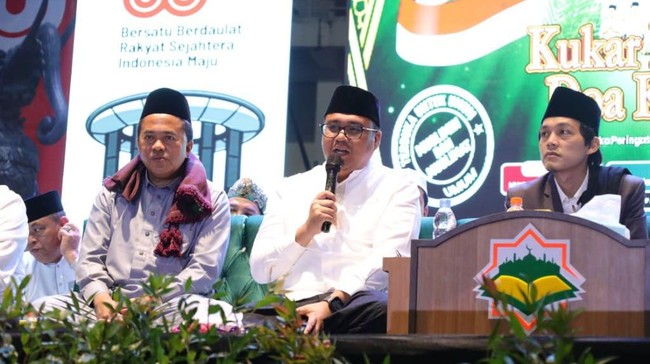 Acara yang digelar dalam rangka peringatan Hari Ulang Tahun (HUT) ke-80 Kemerdekaan Republik Indonesia ini berlangsung penuh khidmat. Ribuan jamaah tampak larut dalam lantunan shalawat dan doa, menciptakan suasana religius dan penuh kehangatan bersama Gus Iqdam.
