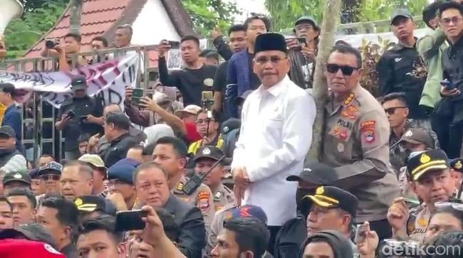 Pantauan detikKalimantan di lokasi, tampak Supian mengenakan kemeja putih dan peci hitam berdiri di tengah-tengah kerumunan massa. Di belakangnya tampak sederet aparat berseragam. Banyak yang mengimbau agar aparat di sekitar lokasi aksi untuk ikut duduk supaya tidak menghalangi pandangan peserta aksi dan awak media kepada Supian.