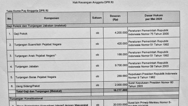 "Adapun sebagai bentuk transparansi apa yang kemudian sudah dilakukan evaluasi dengan total yang akan diterima oleh anggota DPR berupa Komponen-komponen tunjangan, serta Hal-hal lain. Ini kami akan lampirkan dan nanti akan dibagikan kepada awak media," katanya.