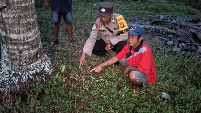 "Tangisan bayi membuat saksi berhenti mencari rumput. Saksi atas nama Pardi yang penasaran kemudian mencari sumber suara itu. Saksi kemudian mendapati bayi terbungkus kain, dan diletakkan begitu saja di bawah pohon kelapa," jelas Ade.