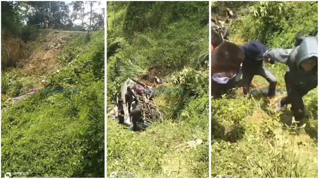 Rombongan asal Bogor mengalami kecelakaan ketika melintas di Kabupaten Tanggamus, Lampung. Minibus Elf yang mereka tumpangi masuk ke dalam jurang.