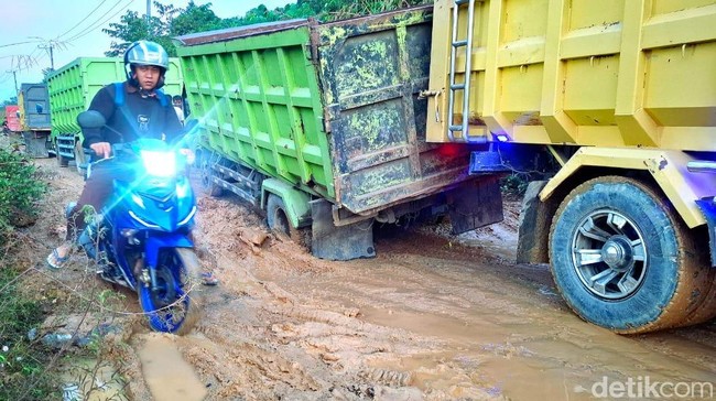 Berdasarkan pantauan detikKalimantan di lokasi, truk yang membawa material terjebak dalam lumpur setinggi betis orang dewasa menjelang waktu Maghrib. Akibatnya, arus lalu lintas dari kedua arah sempat terhenti total, menyebabkan antrean kendaraan roda empat.