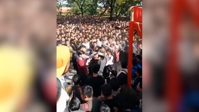 Beredar video di media sosial, pencari kerja baku hantam di lokasi job fair. Diketahui, peristiwa itu terjadi di Cikarang Utara, Kabupaten Bekasi, Selasa (27/5/2025). Pencari kerja terlibat kericuhan karena berebut memindai QR code.