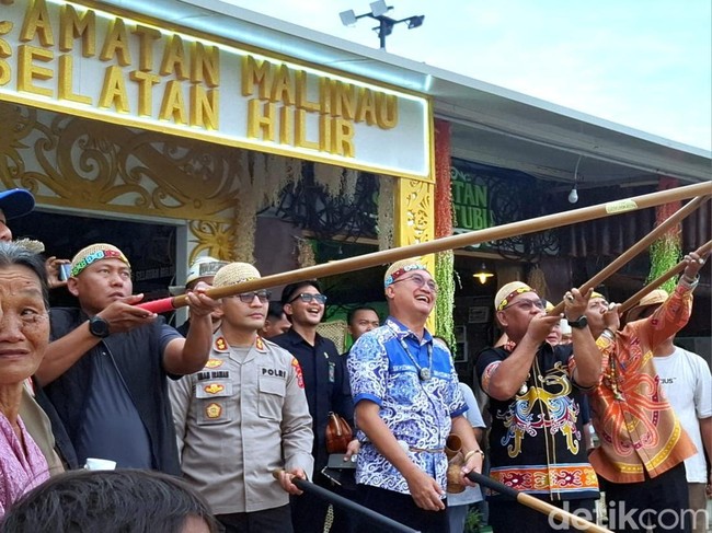 Puncak keseruan terjadi saat rombongan tiba di stand Kecamatan Malinau Selatan Hilir. Perhatian Bupati Wempi langsung tertuju pada deretan sumpit atau sipet yang terpajang rapi. Tak sekadar melihat, Wempi mengambil salah satu sumpit dan mulai memberikan 'pelajaran sejarah' dadakan kepada para pejabat yang mendampinginya.