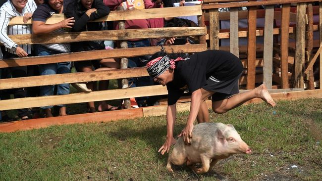 Gelak Tawa Lomba Tangkap Babi dengan Mata Tertutup di Pontianak