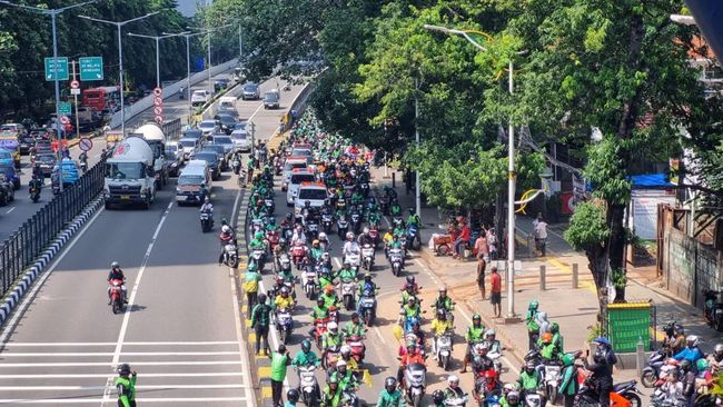 Rombongan Ojol 'Hijaukan' Jalanan-TPU Karet Bivak Antar Jenazah Affan