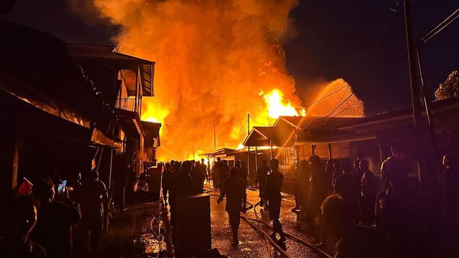Nunukan - Kebakaran melanda rumah dan toko di Jalan Maramis, Mansalong, Kecamatan Lumbis, Kabupaten Nunukan, Minggu (14/9/2025). Ada 51 rumah dan toko hangus terbakar.