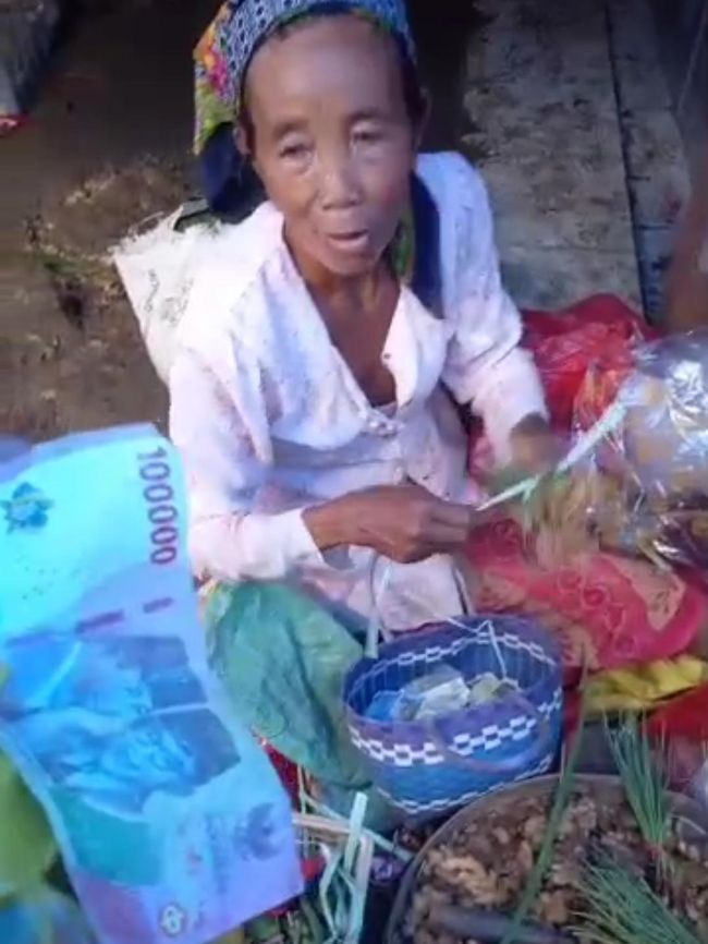 "Ya Allah, kasian kamu Bu, moga dapat ganti yang lebih besar. Ini, ini Bu uangnya buat kenang-kenang," lanjut sang pembeli, sambil menyerahkan kembali lembaran uang mainan yang sempat ia lihat.