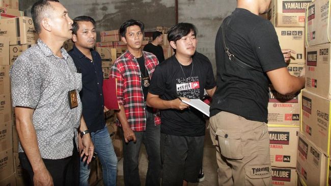 Total 165 kemasan oli berbagai ukuran untuk kendaraan roda empat dan roda dua berhasil disita. Dengan rincian ada 52 kemasan oli berbagai merek dan ukuran disita dari gudang B6, 54 kemasan oli berbagai merek dari gudang B7 dan 59 kemasan oli berbagai merek dari gudang D6.
