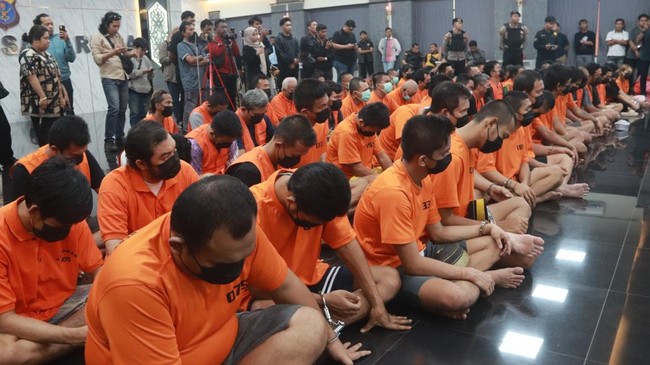 Kemudian 62 dari 66 tersangka berjenis kelamin laki-laki, sementara 4 lainnya perempuan. Polisi juga menyita barang bukti berupa 2,85 kg sabu, 14,85 gram ganja, 19 butir ekstasi, sepeda motor, uang tunai, ponsel, dan perlengkapan pengemasan narkoba.