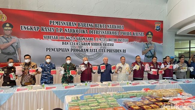 Polda Kalimantan Selatan kembali memusnahkan ratusan kilo narkoba jenis Sabu, disusul belasan ribu pil ekstasi dan ratusan gram serbuk ekstasi. Pemusnahan dilakukan bersama Forkopimda di Aula Polda Kalsel, Kamis (11/9/2025).