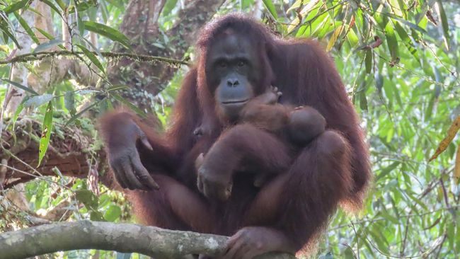Kabar gembira datang dari hutan Taman Nasional Bukit Baka Bukit Raya (TNBBBR) di Kabupaten Melawi, Kalimantan Barat. Orangutan betina bernama Santi (13) melahirkan satu bayi betina dalam kondisi sehat.
